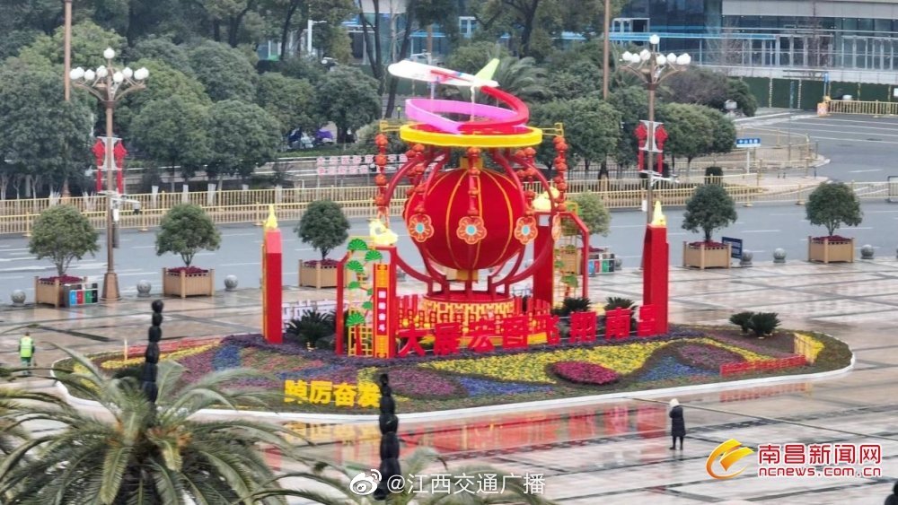 【南昌八一广场新春花卉造型亮相】1月15日,是我国南方传统节日“小年”。当日,八一广场春节立体花卉造型“大展宏图,飞翔南昌”精彩亮相。该造型高13米,长48米,由大型灯笼花灯和特色花墙组成,并配以29万盆报春花、三色堇、紫罗兰等时令花卉,营造出祥和喜庆的春节氛围。