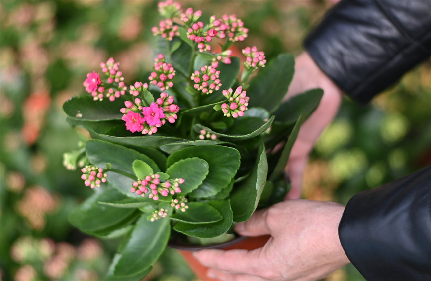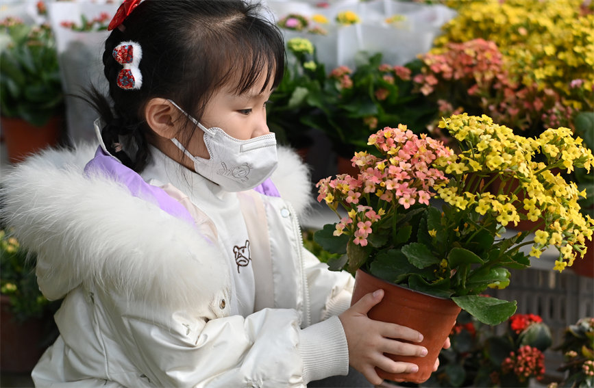 立春节气过后,气温开始慢慢回升,新疆巴州库尔勒市各大花卉基地和花卉市场内姹紫嫣红,鲜花竞相绽放,市民三五成群结伴而来精心挑选,拍照、观赏,乐在其中,花卉市场热闹异常。(图片由确·胡热拍摄)