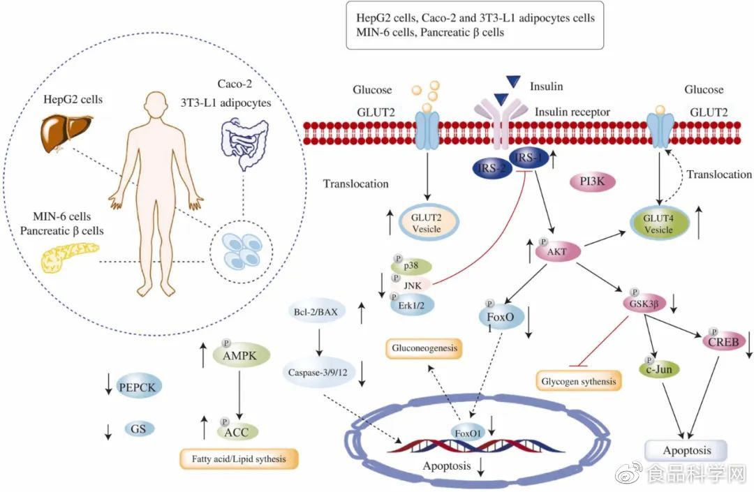 花卉中的生物活性成分在降糖活性中起着重要作用,其机制包括NF-κB、AKT/mTOR、Nrf2和线粒体凋亡途径的调节(图17)。