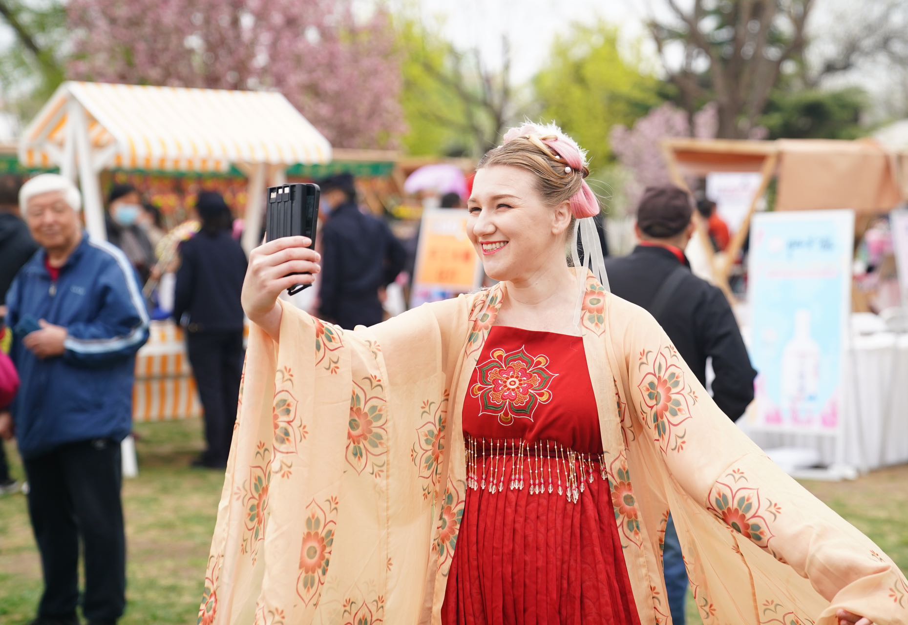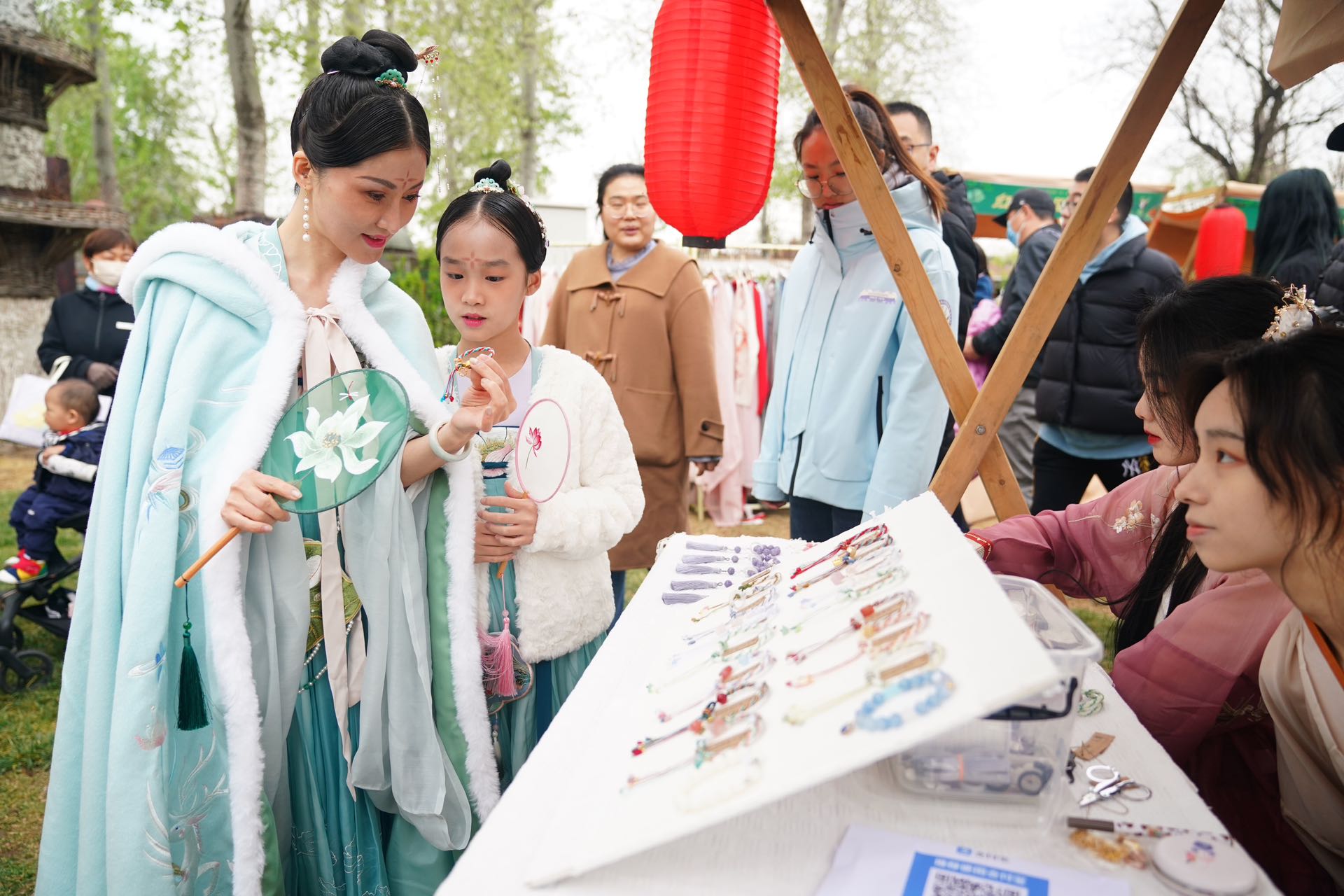 4月5日,为期五天的第三届北京花朝汉服文化节在世界花卉大观园举行。5万平方米的赏花面积,结合100多项传统文化节目、2000多种国风商品展示,让广大市民可以开启古风沉浸式体验,共襄花朝盛宴。本报记者 刘平摄