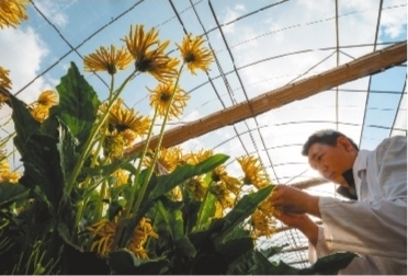 近年来,云南不断采用遗传育种、航天育种等方式大力开展花卉新品种繁育工作,加强鲜花背后的 “芯”科技,助力花卉产业持续健康高质量发展。截至2022年底,云南获得国家知识产权局授权及在省内登记注册的自主培育花卉新品种达950余个,数量居全国第一。图为云南锦科花卉工程研究中心技术人员王江兵在观测非洲菊新品种。 新华社发
