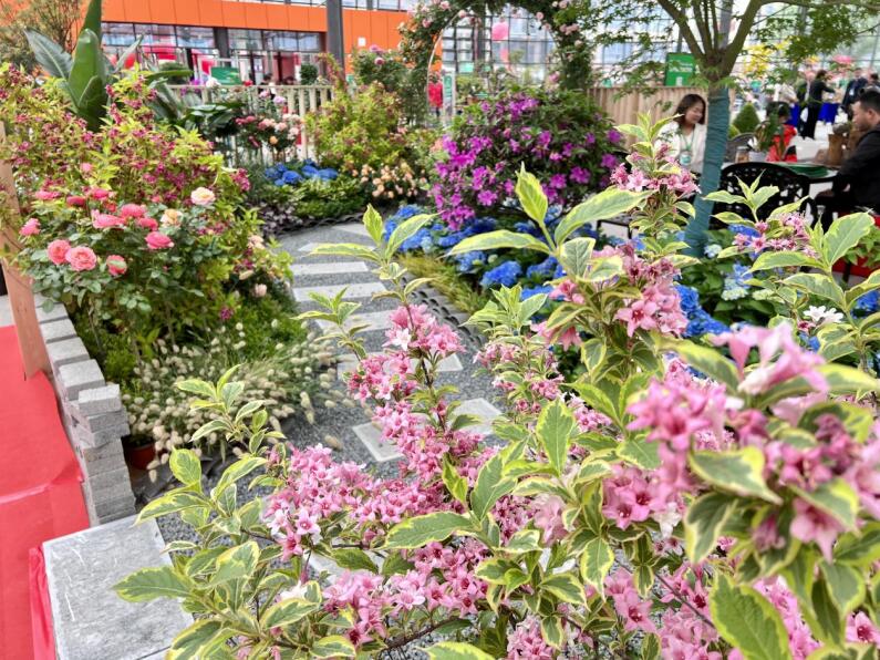 展会现场,分为盆景、花卉、鲜切花、庭院花境四大功能区,充分展示苗木花卉产业最新成果,同时推出了直播培训、评奖等活动,增强观展观众互动体验,搭建苗农苗企交流平台。