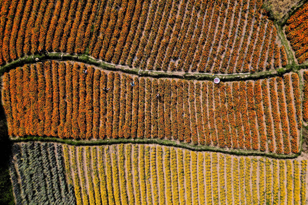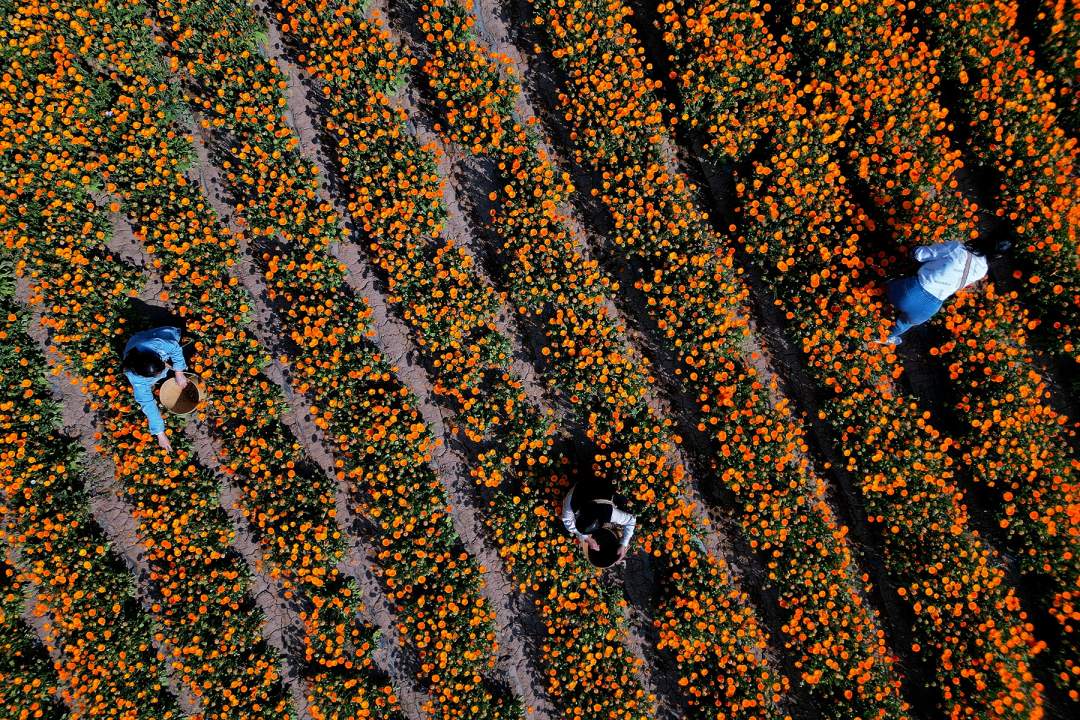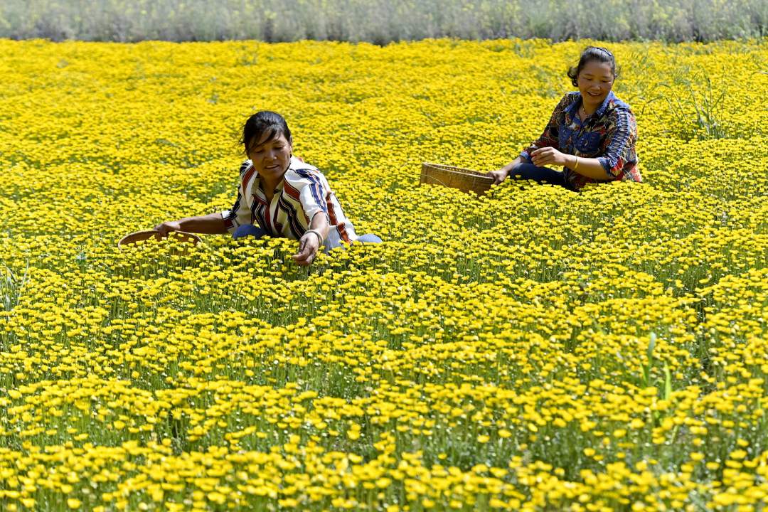 4月19日,在云南省大理白族自治州南涧彝族自治县乐秋乡乐秋村花卉制种基地,花农忙着采摘花种。