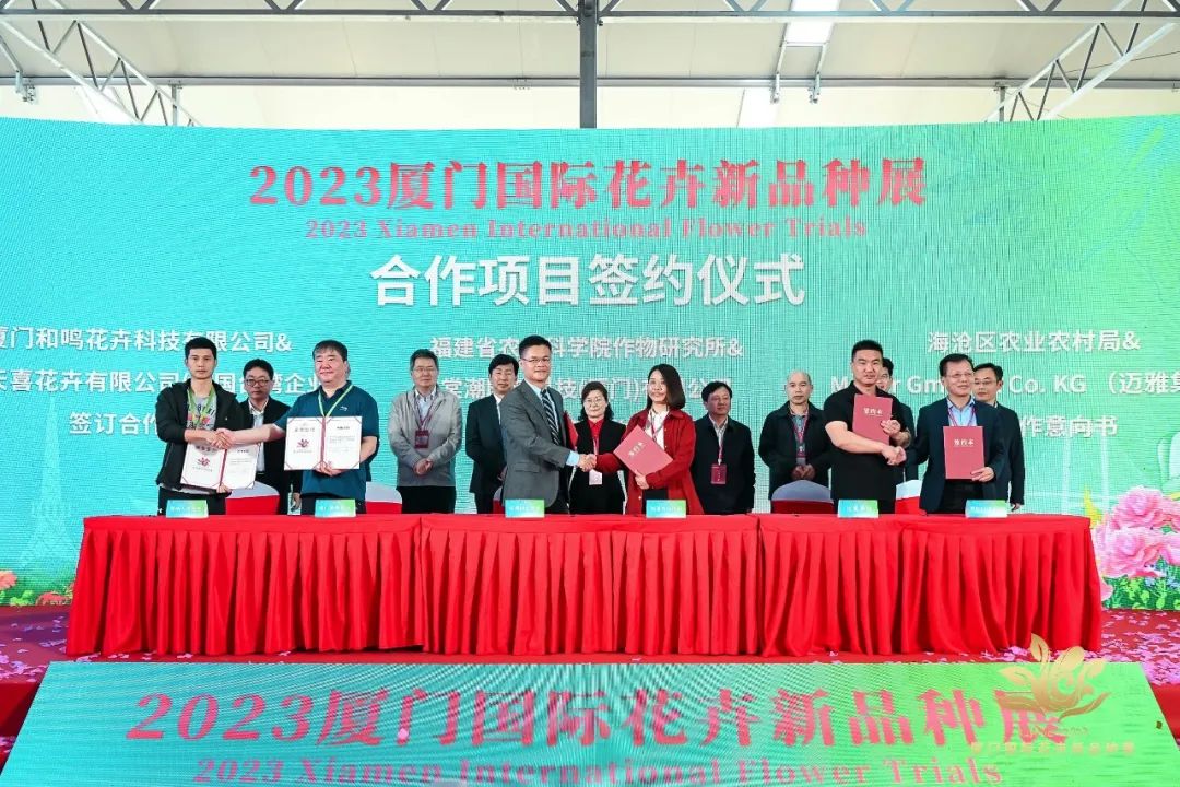 活动现场,还举行了花卉产业招商引资重点项目签约仪式。德国迈雅集团与海沧区农业农村局签订了合作意向书,计划投资2亿元,在海沧新建花卉灌溉、操作、培育等机械设备的生产基地,并以厦门为支点,出口东南亚。