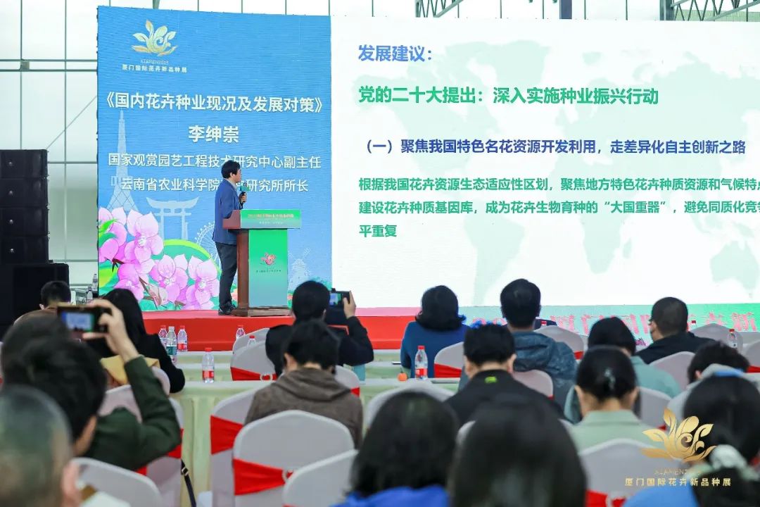 花卉种业振兴国际化高峰论坛以“迈向国际·振兴产业”为主题,邀请了福建农林大学党委副书记、校长兰思仁,农业农村部科技发展中心总农艺师兼国际植物新品种保护联盟(UPOV)主席崔野韩等行业专家学者围绕品种知识产权保护、花卉产业与乡村振兴、国内外花卉种业的发展趋势等主题进行深度分析与解读,为加快花卉种业应用研究和市场推广及推动花卉全产业链有序发展建言献策。