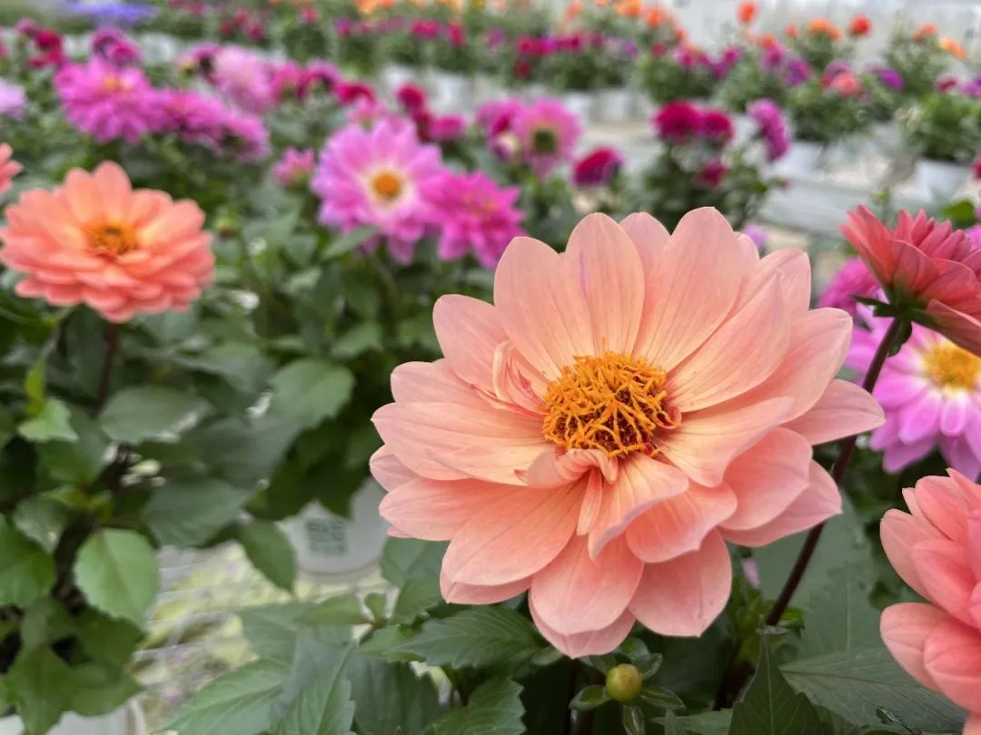 值得一提的是温室种植展示区规划了12大品种展区,包括:海棠展区、角堇展区、矮牵牛展区、天竺葵展区、大丽花展区、舞春花展区、麦秆菊展区、金鱼草展区、康乃馨展区、观赏果蔬展区、南非万寿菊展区、福禄考展区。