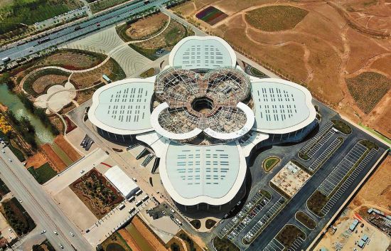 上图:4月9日拍摄的昆明国际花卉拍卖交易中心菏泽分中心(无人机照片)。