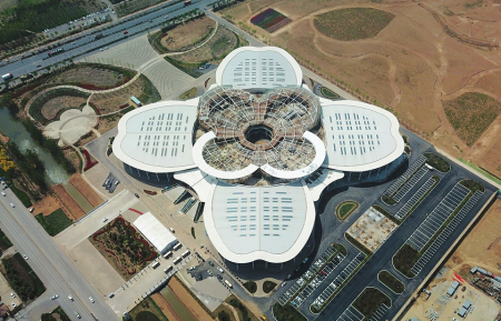 这是4月9日拍摄的投入使用的昆明国际花卉拍卖交易中心菏泽分中心。菏泽分中心以牡丹、芍药等花卉作为主要交易品种,设有拍卖交易席位124个,配备有物流、仓储、冷库等配套设施。
