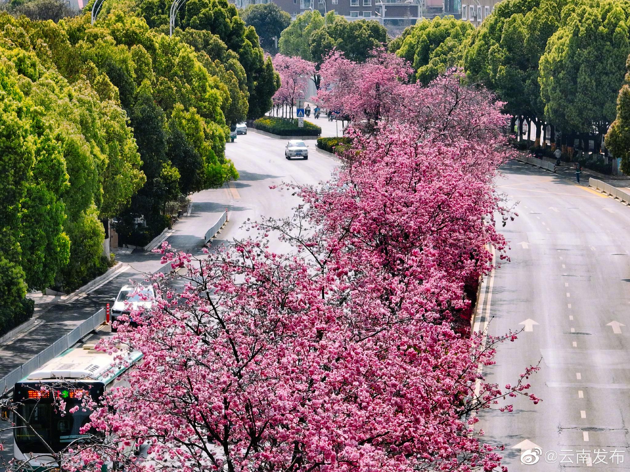 近年来,昆明市充分利用生态景观资源,积极推进花卉景观大道建设,全面提升城市绿化品质。圆通街、穿金路上的樱花,金兰路上的泡桐,教场中路上的蓝花楹,日新路、广福路和北京路上的月季,文林街上的银杏,红塔西路的冬樱花,龙泉路的梅花等景观,一路一景,四季有花。目前,昆明市主城区已有100多条道路形成了一定规模的花卉景观效果,向市民游客展示着四季不同的“花卉文化”和春城魅力,图为穿金路樱花大道一景。(云南日报 胡妤雅 摄)