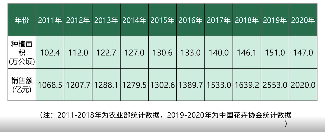 一、中国花卉产业发展变化