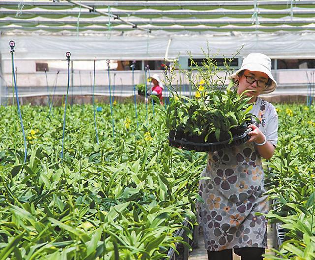 在位于江川区前卫镇的石河苹果山花卉产业园里,一排排绿油油的文心兰种苗长势良好。目前园区占地700多亩,共有种植户22户,栽种兰花、绣球花、澳洲蜡梅、多肉等花卉。近年来,前卫镇围绕“绿色食品牌”战略,依托当地得天独厚的气候、土壤资源和花卉产业优势,打造了石河苹果山花卉产业园,形成了品牌、质量、效益同步提升的花卉产业集群,引领种植户走向规模化、标准化、绿色化发展道路。