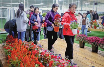 10月22日,中国农业科学院的一家园艺驿站,“国庆花坛花卉到我家”活动上,曾参加“千家万盆”活动的市民领取国庆花坛中摆放的花卉。当日,首都绿化委员会办公室将1300盆花卉赠送给市民和养老院。新京报记者 薛珺 张璐 摄影报道