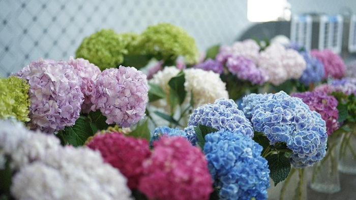 在盒马门店,各色绣球已成花海
