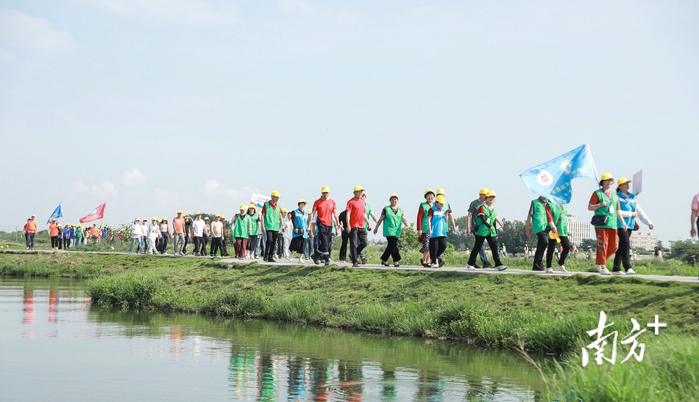 漫步在3公里长的中离溪滨水绿道,游客们可以亲身感受“河畅、水清、堤固、岸绿、景美”的生态建设成果,体验金石镇打造出的碧道环绕、绿荫成林、芳草萋萋的开放式滨水绿美新空间。来自潮安区水务局、河湖保护队、镇村干部以及亲子家庭的徒步爱好者们参与“徒步山水 探索自然”活动,大家在移步换景中尽享生态之美。