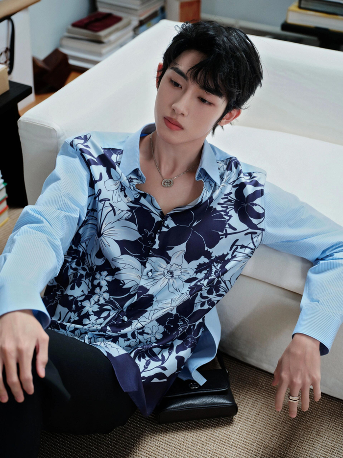 这件衬衫独特的蓝白花卉图案设计,将复古与时尚完美融合搭配精致的Gucci项链,标志性双G logo低调又奢华,恰到好处地点缀颈部线条,为整体造型增添了几分精致贵气