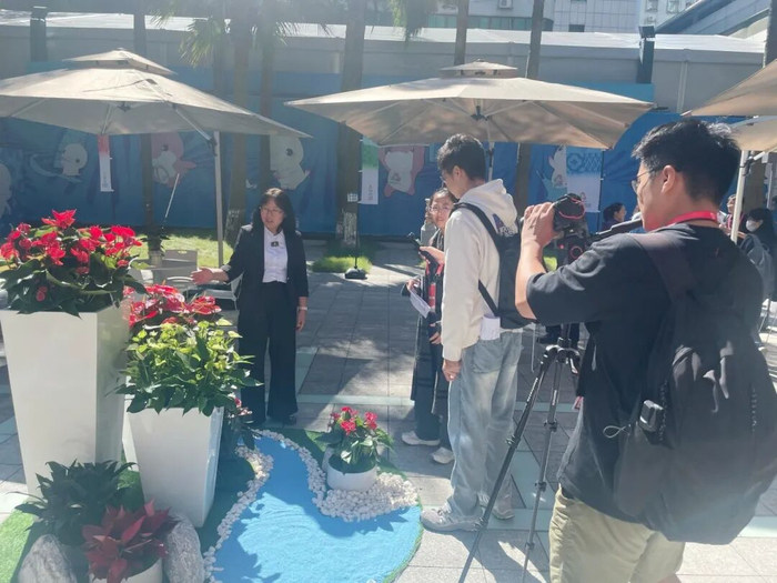 广花公司副总经理张晓华介绍,此次新优花卉的展示不仅为媒体工作者打造了“颜值+内涵”兼具的舒适休息空间,更以红掌为媒介,展示广东花卉产业的文化底蕴与创新实力,提升湾区形象,为十五运会增添亮丽色彩。