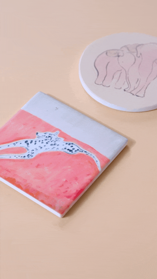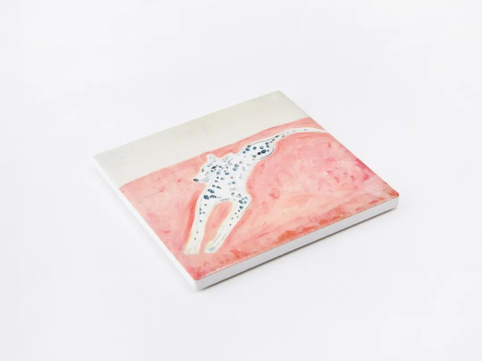 陶瓷材质的杯垫,呈现出常玉经典画作《斑点猎犬》和《象》。