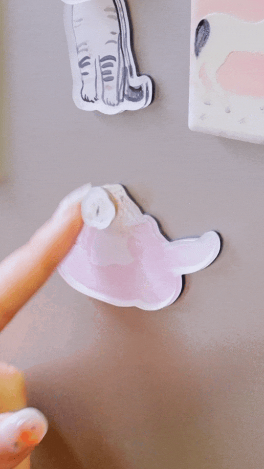 猫咪冰箱贴的猫头部分同样可以转动,非常有趣。