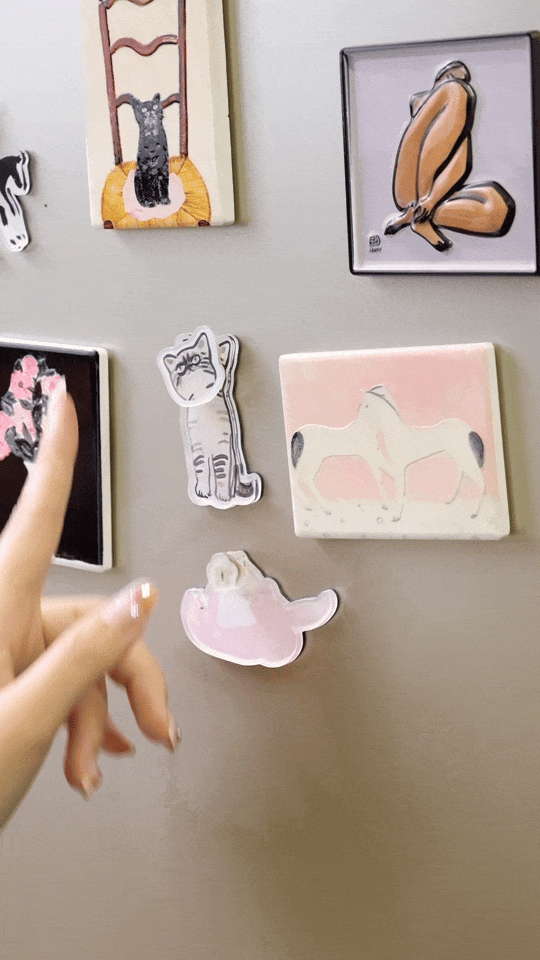 冰箱贴巧妙地还原了画作,可转动的猫头更加立体可爱。《猫》亚克力冰箱贴