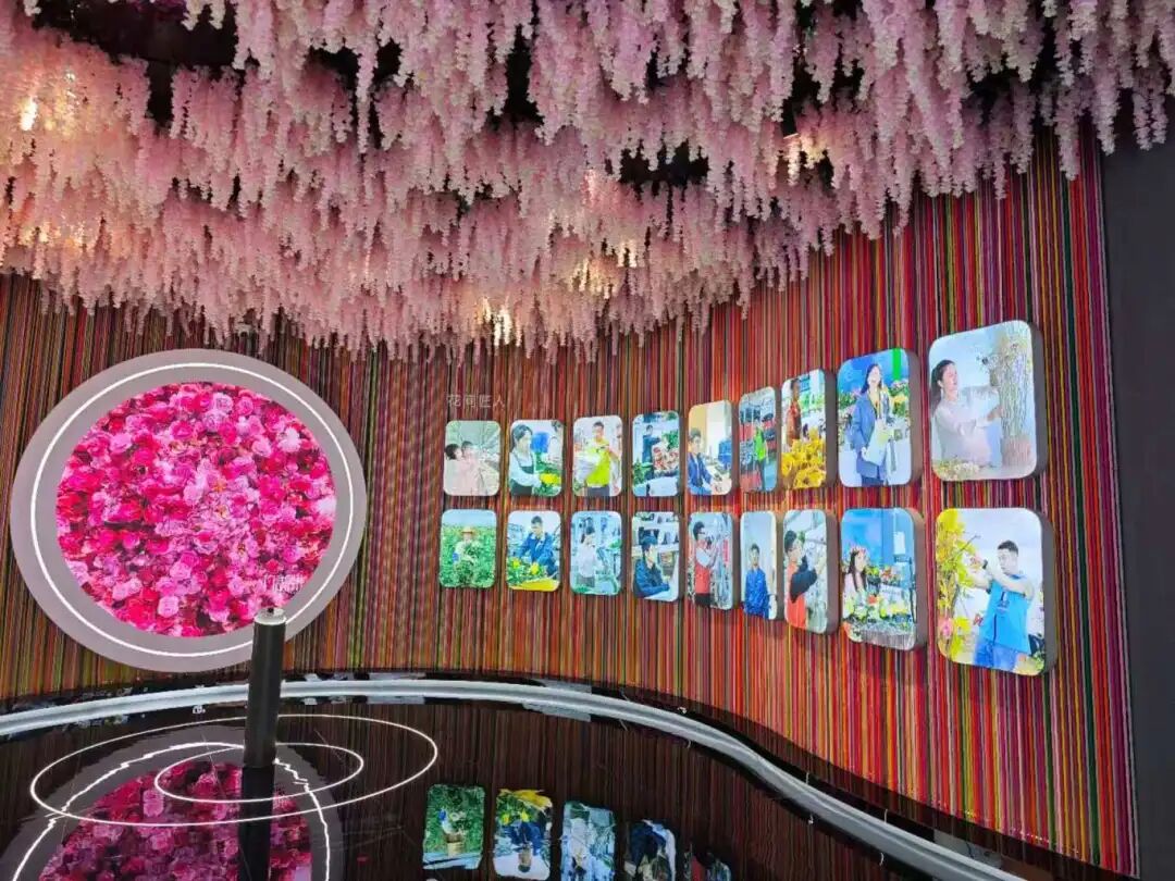 步入展览馆,一面绚烂的永生花墙映入眼帘。据展览馆工作人员介绍,在斗南,一条鲜花之路串起了花卉产业、文旅产业和无数人的梦想。从肩挑背扛的田间地头,到享誉世界的亚洲花都,几代人在种业端、种植端、市场端的深耕细作成就了今日的斗南奇迹。