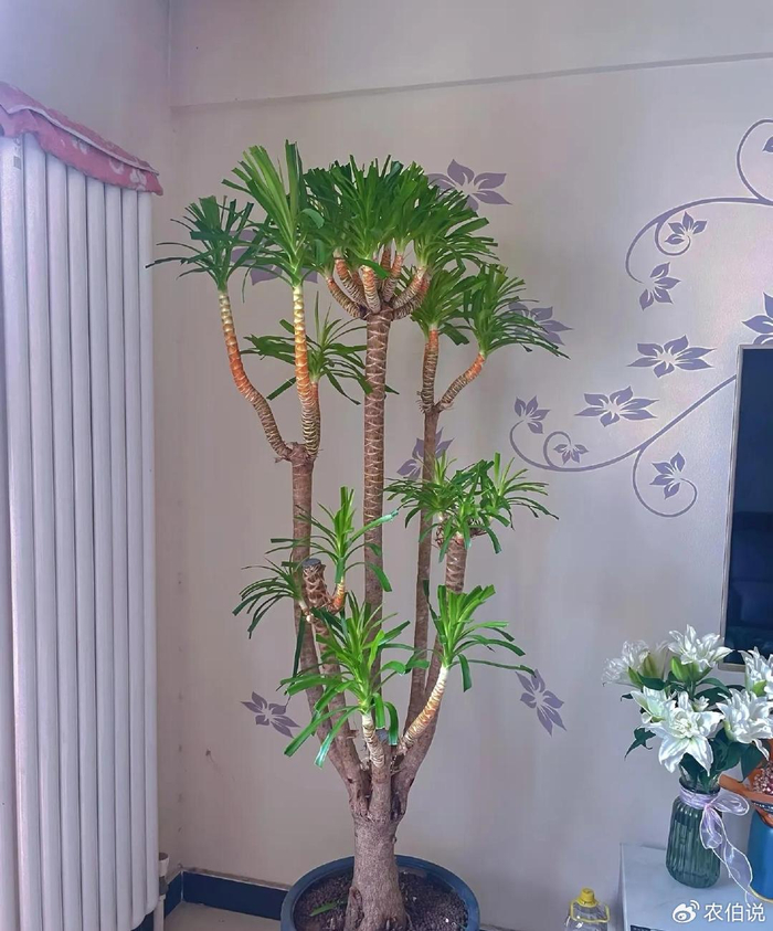 剃头后的龙血树,还需要浇一次发酵的芝麻饼肥水,放在室内阳光充足的地方,土壤变干及时浇水,又能越长越漂亮。