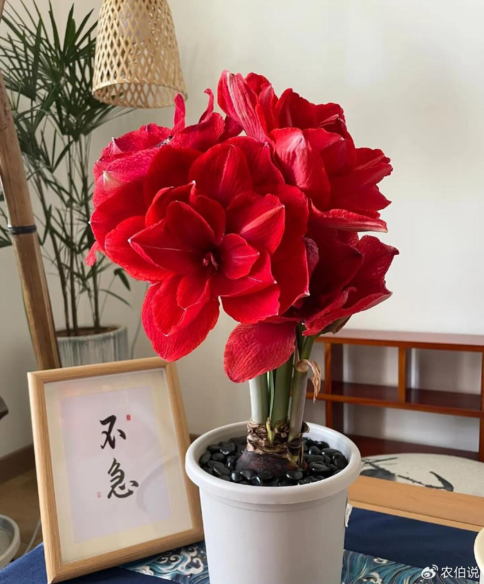 养在室内阳光足的地方,温度达到15度以上,到春节前,朱顶红就能开花了。