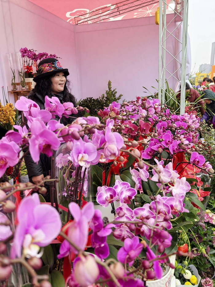 现场不少前来拍照和打卡的市民。春节前夕,正是年宵花旺季,花卉摊位前,以蝴蝶兰、大花蕙兰、银柳为代表的传统年宵花吸引众多市民游客驻足挑选。市民李女士在现场精心挑选了一盆蝴蝶兰:“本来就计划买盆年花装点下家里,刚好看到集市上年花特别多,价格也实惠,就在这买了!”