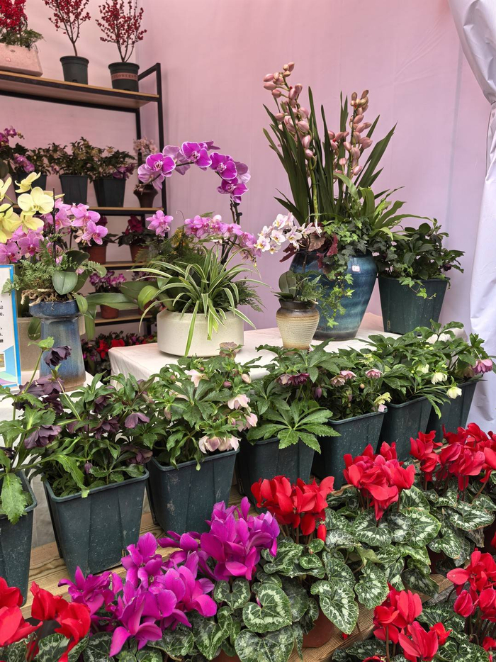 温江是全国四大花木产业基地之一,此次年宵花市依托其传统优势产业基础,在活动现场匠心打造花卉标展,集结了南美农业、逸美园艺、川雅园艺等十余家农业花卉企业,百余种花卉与川派盆景相映成趣,不仅“绽”成一条繁花似锦的“美丽经济”风景线,更展示出温江新春欢乐景象。